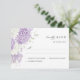 Cette élégante carte de réponse RSVP présente des florales douces de lavande et de lilas associées à de délicates hydrangeas blanches, créant un look romantique et raffiné pour votre suite de papeterie de mariage.