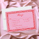 Cette carte de réponse de mariage photo fantaisiste avec choix de dîner comporte un cadre rectangulaire festonné rouge ludique sur un fond rayé rose et rouge amusant. Vos initiales prennent le devant de la scène au verso. Parfait pour un mariage avec une esthétique prépa ou Saint-Valentin, ce design charmant offre un look peint à la main sucré pour votre célébration spéciale. Créé par Simply Farmhouse Press.