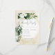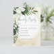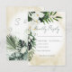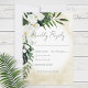 Cette carte de réponse de mariage présente une belle verdure tropicale luxuriante et des fleurs blanches sur un fond aquarelle de sable jaune doux. Parfait pour le mariage de destination ou de plage. Créé par Simply Farmhouse Press.