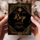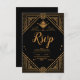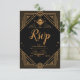 Cartons Réponse Mariage Art Déco Géométrique Elégant Or Noir