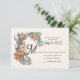 Elégante carte de mariage floral Art nouveau RSVP en pêches, verts et bordeaux.