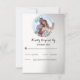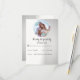 Une invitation moderne et simple avec une image dans une couronne de fleurs turquoise. Le fond est dégradé blanc et gris
