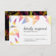 Ajoutez une touche d'élégance artistique à vos nuptiaux imminents avec ces cartes RSVP de mariage, qui comportent des confettis triangulaires multicolores posés sur un arrière - plan blanc. Reverse montre des confettis triangulaires sur un arrière - plan noir contrasté. Utiliser tel quel ou personnaliser selon vos besoins. Un beau souvenir pour des thèmes mariages pastel confetti ! Design © W.H. Sim. Voir plus sur zazzle.com/expressionsoccasions