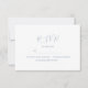 Carte RSVP minimaliste moderne avec texte bleu poussiéreux élégant et disposition douce. Une combinaison parfaite pour toute suite mariage romantique et simple. Personnalisez facilement avec les détails de la réponse de l'invité. Pour obtenir de l'aide sur la personnalisation, envoyez un courriel à bpkolman@gmail.com.