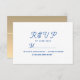 Carte RSVP de mariage moderne, élégante, minimaliste blanc et bleu avec coeur de corde or à l'arrière et script de calligraphie simple.