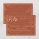 Ce mariage moderne, simpliste, de style boho terreux RSVP dispose de beaux feuilles d'or, et une combinaison de script et de lettrage simpliste. Vous pouvez customiser cela avec votre propre date de réponse et des choix de repas personnalisés.