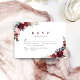 Aquarelle peinte fleurie botanique et verte en rouge bordeaux, rose vif et bleu marine, moderne et élégant, grandes cartes RSVP pour mariage moderne, mariage rustique, mariage boho et mariage de jardin. Voir toutes les pièces correspondantes dans la collection.