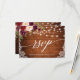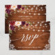 Carte de Réponse de Mariage en Dentelle Florale Marsala Bourgogne avec Écriture Calligraphique Moderne, Bois Rustique et Roses Bourgonnes et Roses. Lumières de Chaîne Brillantes.