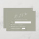 Cette élégante carte de réponse RSVP de mariage moderne comporte un texte blanc sur fond vert sauge. Le titre "RSVP" apparaît dans une belle écriture calligraphique, avec un texte personnalisable ci-dessous en police sans empattement. Le verso est uni vert sauge.