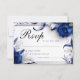 Cartons Réponse Mariage Chic Bleu Nuit & Fleurs Argentées Rubans