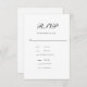 Une traditionnelle carte RSVP de mariage classique, en noir et blanc. Consultez notre collection pour obtenir l'invitation correspondante et d'autres articles dont vous aurez besoin. https://www.zazzle.com/collections/white_black_silver_formal_wedding_suite-119687999413813838