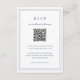 Carte RSVP de mariage bleu poussiéreux de style classique avec un design simple et minimal avec un code QR en option et des détails entourés d'une double bordure (si vous préférez, vous pouvez supprimer le code QR dans l'outil d'édition de conception). Les fontes alternent entre un script élégant, une fonte serif traditionnelle et minimaliste sans serif. Cette carte de réponse est idéale pour un mariage officiel.