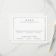 Cette carte de réponse de mariage classique élégant or est simple et polyvalente. Elle présente un design chic blanc et noir avec un cadre or simple et un texte éditable minimal. Cliquez sur le bouton modifier pour personnaliser ce design.