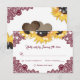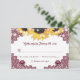 Carte de réponse de mariage de tournesol et de bourgogne rustique avec des fleurs de tournesol, des guirlandes lumineuses, des coeurs de toile de jute et de la dentelle florale délicate. Conception de carte parfaite pour compléter votre mariage champêtre rustique de bourgogne, jardin, arrière-cour ou grange inspiré par les tournesols. Articles assortis disponibles.