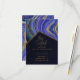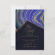 Vous obtenez à la fois le glamour et l'impact élevé avec cet ensemble de mariage de coordination qui comprend des motifs d'agate abstraits, texturés avec des faux cristaux et des reflets dans un film d'or scintillant. Des combinaisons de couleurs frappantes, comme cette suite avec sa palette ciel de nuit du bleu profond de minuit au violet doux, créent l'arrière - plan pour les pièces de cet ensemble coordonné. Cette carte RSVP de mariage contient tous les éléments ci-dessus ainsi que de la calligraphie élégante sur un étiquette incliné et semi-transparent pour tenir vos sélections de menu. Un modèle est fourni pour ajouter facilement votre réponse par date, sélections de menu, initiales et date du mariage. Affichez le lien de collection sur cette page pour voir tous les éléments correspondants dans cette belle conception ou recherchez ID827 pour voir des choix de couleurs supplémentaires.