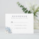 Un élégant rsvp de mariage avec une tige hydrangée bleu aquarelle. Le texte est en ardoise bleu et noir sans serif police, C'est le design fait partie de notre collection Blue Hydrandea.