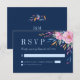 Cartons Réponse Mariage d'aquarelle florale bleu marine