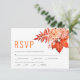 Bouquet d'automne orange avec fleurs et carte de réponse RSVP mariage feuille. Ce joli design mariage dispose d'un bouquet fleuri de fleurs de dalia et de feuillage. Le dos comprend un arrière - plan teinté d'orange brûlé.