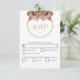 Ce design présente un bouquet de fleurs sauvages rustique. Un simple cercle doré encadre le titre. Les tons floraux roses rustiques viennent compléter la verdure des feuille. Les tons dorés cravate tout ensemble pour créer une atmosphère rustique de jardin boisé de campagne. Des rayures dorées et roses recouvrent l'arrière du design. Conception élégante de la carte de réponse RSVP mariage avec des éléments modernes. Des invitations de mariage et d'autres articles de papeterie sont également disponibles.