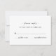 La carte RSVP Black & White Calligraphy Meal Choice Meal Choice est un ajout sophistiqué et pratique à la papeterie mariage, aidant les couples à recueillir des réponses avec style. Parfait pour les mariages modernes, minimalistes et à cravate noire, cet élégant design présente une calligraphie classique dans un jeu de couleurs monochromes intemporel. Qu'il s'agisse d'une réception de salon, d'un mariage de ville chic ou d'un rassemblement contemporain intime, cette carte RSVP complète sans heurts une variété de thèmes mariages. Grâce à ses options de choix de repas, il vous garantit une expérience de repas lisse et organisée, ce qui en fait l'endroit idéal pour des dîners assis, des banquets haut de gamme et des fêtes de mariage élégantes.