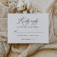 Parfaites pour un mariage moderne, ces cartes RSVP de calligraphie présentent un script élégant et un design minimaliste noir et blanc.