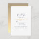 Simple, minimaliste, moderne, élégante carte de mariage bleu poussiéreux RSVP avec choix de repas, coeur de corde or et script manuscrit tendance.