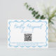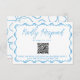 Une simple et élégante calligraphie colorée carte rsvp de mariage rétro. Cela a comme vous voyez un vintage moderne et élégant arrière - plan blanc avec script bleu et code QR personnalisable. Et dessiné à la main modèle floral bleu ciel blanc. Minimaliste et chic avec lettrage manuscrit. Il est entièrement modifiable en cliquant sur le bouton Personnaliser.