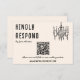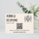 Une simple et élégante calligraphie colorée carte rsvp de mariage rétro. Il a un vintage arrière - plan laiteux moderne et crémeux, avec un script noir et un lustre vintage blanc dessiné à la main et une coupe de champagne sur le dos. Minimaliste et chic avec lettrage manuscrit et code QR personnalisable pour faciliter la tâche de vos invitations à RSVP en ligne. Il est entièrement modifiable en cliquant sur le bouton Personnaliser.