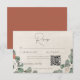 Cette carte de réponse mariage avec un code QR design dispose d'un spray simple, douce aquarelle vert et rouille eucalyptus spray sur un arrière - plan de crème en détresse vintage. C'est délicat, élégant et sobre. Créé par Simply Farmhouse Press.