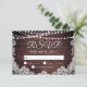 Cartes RSVP de mariage rustiques et élégantes avec belle grange brune en bois avec des lampes à cordes brillantes et accentué avec dentelle blanche. Contactez le concepteur via Zazzle Conversation ou makeitaboutyoustore@gmail.com si vous souhaitez modifier ce design, sur un autre produit ou des éléments de coordination.