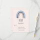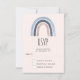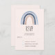 Carte RSVP avec un arc-en-ciel mignon et capricieux. Couleurs bleu et pêche.