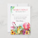 Cartes de réponse de mariage sur une île exotique avec un fond blanc élégant qui peut être changé en n'importe quelle couleur, un arrangement tropical de fleurs d'hibiscus, d'ananas, de noix de coco, de flamants et un modèle de RSVP de mariage moderne.