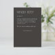 Complétez votre gamme de papeterie mariage avec cette carte de boîtier de réponse RSVP, conçue simplement pour la typographie, conçue pour coordonner avec notre gamme de papeterie mariage "Modern Organic Floral Divider". ● ✦ Entièrement personnalisable et facile à personnaliser. Disponible dans une palette de couleurs soigneusement entretenues, cette carte peut être adaptée à votre thème mariage ou à votre style personnel. Nous sommes là pour vous aider à adapter la conception à vos détails mariages spécifiques - texte, alignement, couleur personnalisée, etc. - et vous aider à créer une suite de papeterie mariage cohésive qui vous est propre.