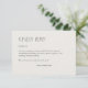 Complétez votre gamme de papeterie mariage avec cette carte de boîtier de réponse RSVP, conçue simplement pour la typographie, conçue pour coordonner avec notre gamme de papeterie mariage "Modern Organic Floral Divider". ● ✦ Entièrement personnalisable et facile à personnaliser. Disponible dans une palette de couleurs soigneusement entretenues, cette carte peut être adaptée à votre thème mariage ou à votre style personnel. Nous sommes là pour vous aider à adapter la conception à vos détails mariages spécifiques - texte, alignement, couleur personnalisée, etc. - et vous aider à créer une suite de papeterie mariage cohésive qui vous est propre.