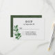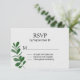 Carte RSVP de mariage vert et blanc toutes saisons faite dans une aquarelle blanche comme texture. Aquarelle graphique d'une tige avec feuilles, décorer le fond gauche avant, de la carte. Le dos de la carte est fait dans un vert foncé texturé. Personnalisez tout le texte pour votre journée spéciale. Des produits correspondants sont disponibles.