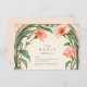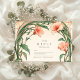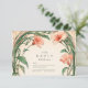 Un faire-part de mariage romantique aux tons coralliens, enveloppé de vignes luxuriantes de style Art Nouveau. Avec ses feuillages verts aux courbes douces et ses fleurs rose saumon radieuses, ce design évoque une élégance botanique rêvée, parfaite pour un jardin d'été ou un mariage romantique d'inspiration nature.