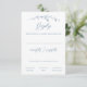 Cette belle carte de réponse mariage rustique dispose d'un arrière - plan blanc classique avec un motif fleur sauvage dessiné à la main et une typographie élégante dans un beau bleu poussiéreux. C'est le design parfait pour un mariage rustique mais élégant et se coordonne parfaitement avec notre suite Fleur sauvage rustique... voir la collection design pour plus d'articles.