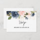 Cette magnifique carte de mariage florale automne rsvp est parfaite pour un mariage tropical. Le design dépeint des fleurs fantaisistes de couleur rose dessinée à la main, bleu foncé et bleu marine, inspirant élégance, classe et beauté naturelle.