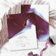 Un arrière - plan abstrait qui évoque l'encre liquide dans les teintes du bordeaux profond, du cyan et du blanc, est la toile de fond de textes manuscrits élégants et de mises en page design moderne dans les pièces de cette belle suite mariage. La carte RSVP de mariage présentée ici présente les éléments ci-dessus et un modèle pour ajouter vos propres informations pertinentes sur l'événement. Recherchez ID762 pour voir toutes les pièces de coordination de cet ensemble.