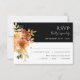 Ces élégantes cartes de réponse de mariage présentent un design floral moderne de chute d'aquarelle sur un arrière - plan noir. Personnalisez avec votre texte. Des invitations assorties et d'autres produits de suite mariages sont également disponibles.