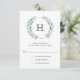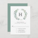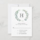 Carte RSVP mariage rustique et élégante avec votre monogramme à l'intérieur d'une aquarelle verte peinte verdure couronne sur un arrière - plan blanc. Un design botanique moderne, parfait pour un mariage d'été.