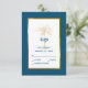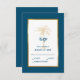 Offrez à vos invités de répondre à votre faire-part de mariage avec cette carte RSVP élégante avec script moderne, texte bleu océan et or incluant un palmier artistique et cadre or métallique sur le devant de la carte. Un arrière - plan coordonné bleu océanique est à l'avant et à l'arrière.