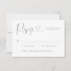 Les cartes de mariage RSVP modernes gris argenté et blanc (les couleurs peuvent être modifiées) présentent un design typographique élégant avec un script de calligraphie chic et un accent de coeur. Le texte personnalisé simple et élégant qui peut être personnalisé avec la date d'échéance RSVP. Le design comprend une ligne pour le(s) nom(s) d'invité(s), la participation à l'événement et le nombre total d'invités présents.