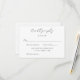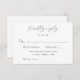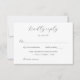 Complétez votre mariage noir et blanc avec ces cartes RSVP calligraphie élégantes avec la date de réponse souhaitée et le libellé d'acceptation/de refus personnalisé. Invités Invitations pour indiquer leurs préférences d'entrée et ajouter vos choix de repas personnalisés. Éléments correspondants disponibles.