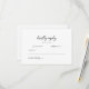 Cette élégante carte RSVP de mariage en noir et blanc présente un design épuré et minimaliste avec une calligraphie moderne et des détails de serif classiques. Les invités peuvent facilement indiquer leur présence, fournir leur nom et noter le numéro de présence. Coordonné avec une suite de papeterie mariage intemporelle pour un look élégant et cohésif.