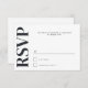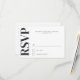 La carte design Belmont présente une grande typographie qui dit "rsvp" Comme vous pouvez le voir ci-dessous, les détails essentiels de la célébration sont gracieusement présentés dans une petite police serif classique.