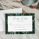 Elégantes cartes RSVP de mariage botanique avec une luxuriante aquarelle en bordure de la carte avec un arrière - plan vert foncé. Personnalisez les cartes RSVP de mariage verdoyantes modernes avec votre date de réponse et personnalisez accepte/décline le libellé. Conçu pour coordonner avec notre collection de mariages de verdure Abondante.