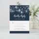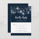 Cartes RSVP de mariage imprimées et abordables avec un modèle do-it-yourself facile pour la personnalisation. Ce design rustique chic présente des brins de lumières clignotantes et des jarres de maçon sur un arrière - plan bleu marine foncé. Personnalisez le design avec les détails de la réponse du mariage - y compris les options de repas si nécessaire - ou customisez le texte à utiliser pour n'importe quel événement. Utilisez les outils de conception pour choisir n'importe quelle couleur arrière - plan, ajouter des photos et customiser les polices de texte et les couleurs pour créer un design unique pour votre mariage.