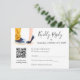Un design de RSVP de mariage élégant avec une illustration de couple moderne et une mise en page propre et minimaliste. Comprend un code QR pour un accès numérique facile, combiné à une typographie script élégante et une structure raffinée pour une expérience de mariage contemporaine.