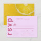 La carte RSVP Mariage d'été italienne moderne a été conçue pour élever vos invitations de suite de faire-part de mariage avec une touche d'élégance. Avec vos détails dans un script moderne chic, cette carte présente un magnifique mélange de rose et de lavande qui complète parfaitement votre thème mariage. Au contraire, une tranche de citron vibrante sur fond jaune ensoleillé rayonne la joie et la chaleur d'un été italien, ajoutant un élément ludique mais sophistiqué à votre papeterie mariage. Parfaitement associée à notre Faire-part de mariage d'été italien moderne, cette carte RSVP ajoute une touche de sophistication et de charme que vos invités aimeront.